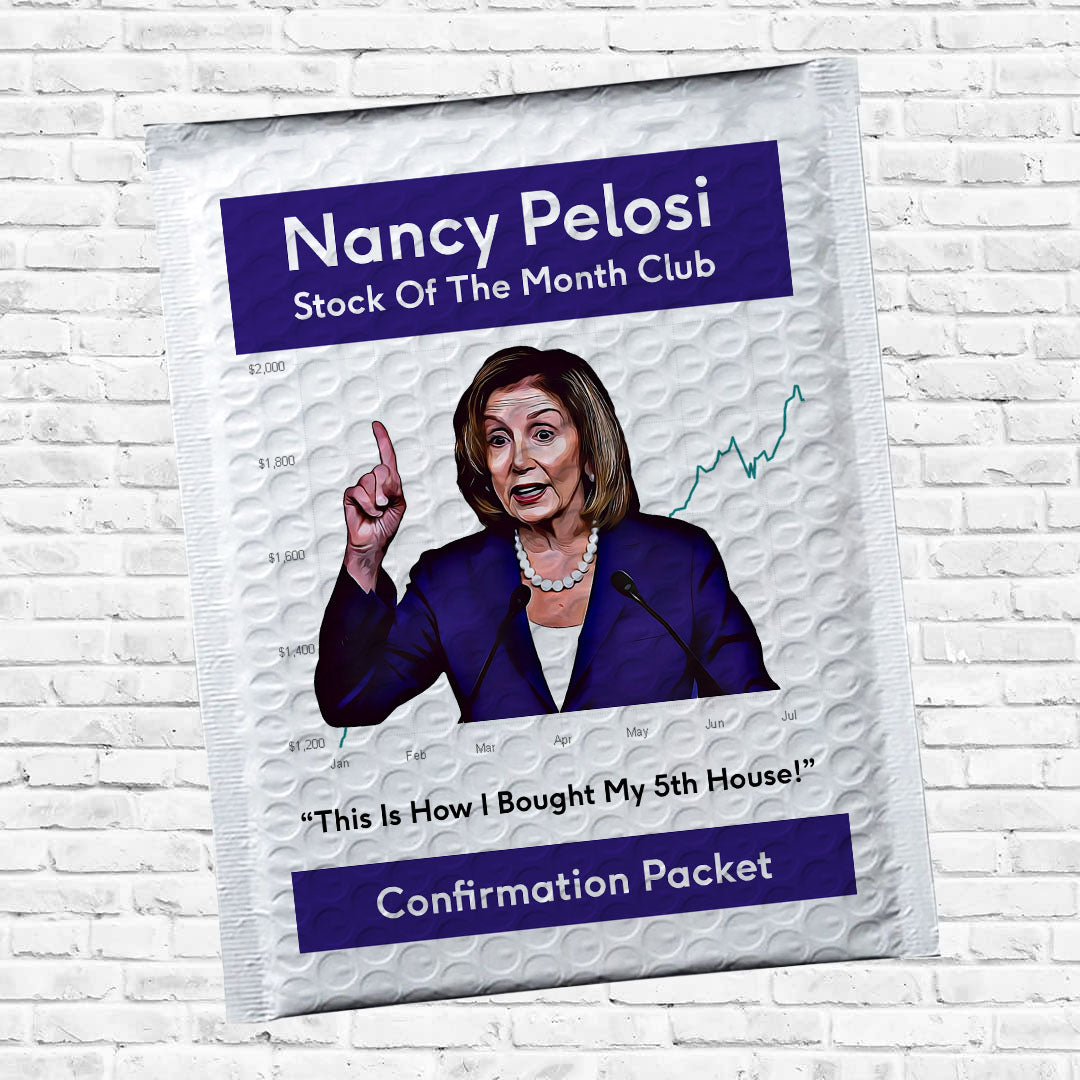Prank Your Friends That Hate Nancy Pelosi and How She And Her Husband Are Getting Rich From Her Position! Send Them A Nancy Pelosi Stock of The Month Club Confirmation Packet!