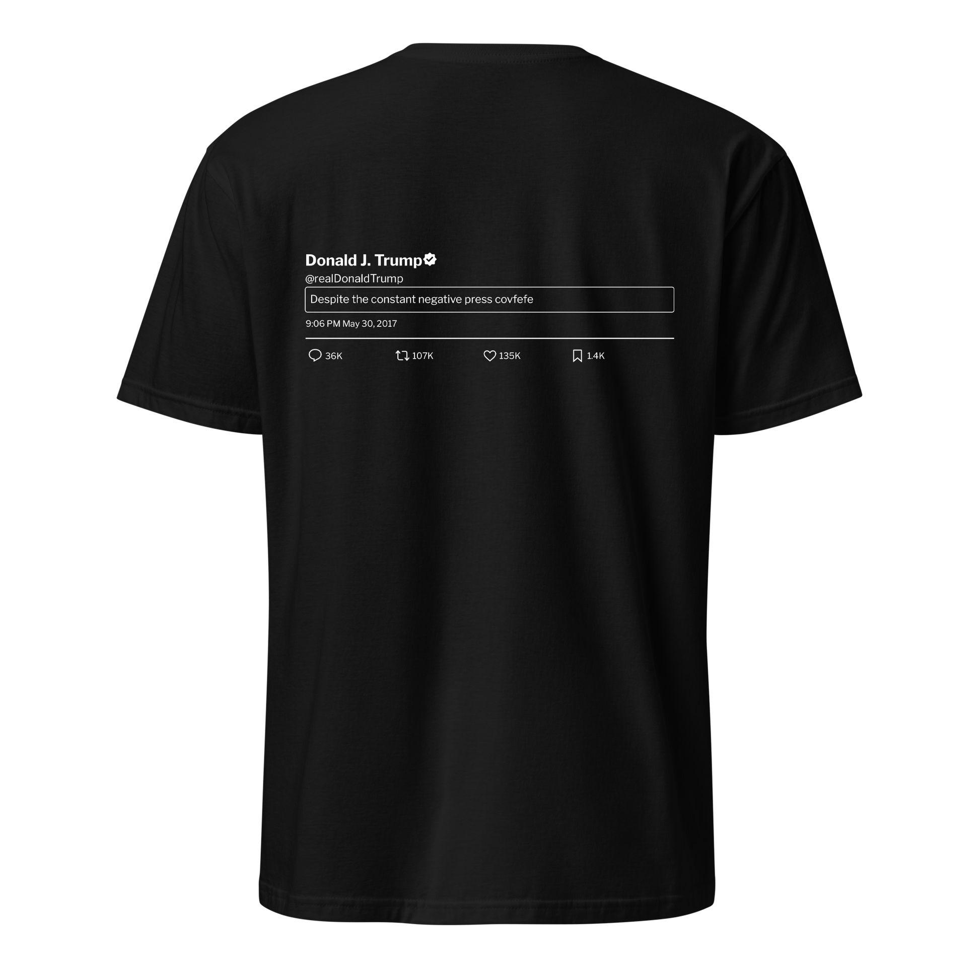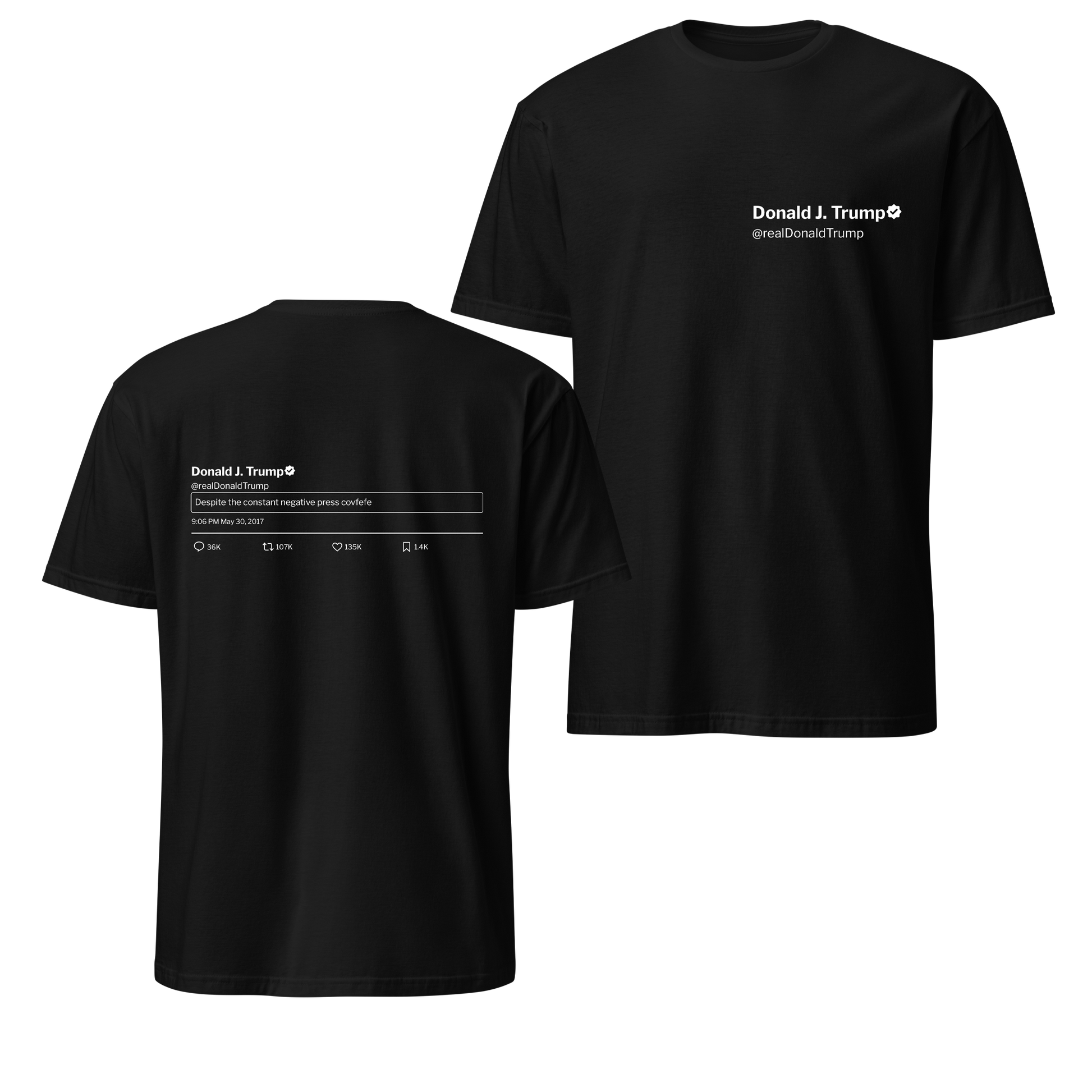 Ever wish you could wear history’s most iconic typo on your back? Now you can. This shirt immortalizes the legendary midnight brain blip that had the internet asking, “What is covfefe?” and never really getting an answer.